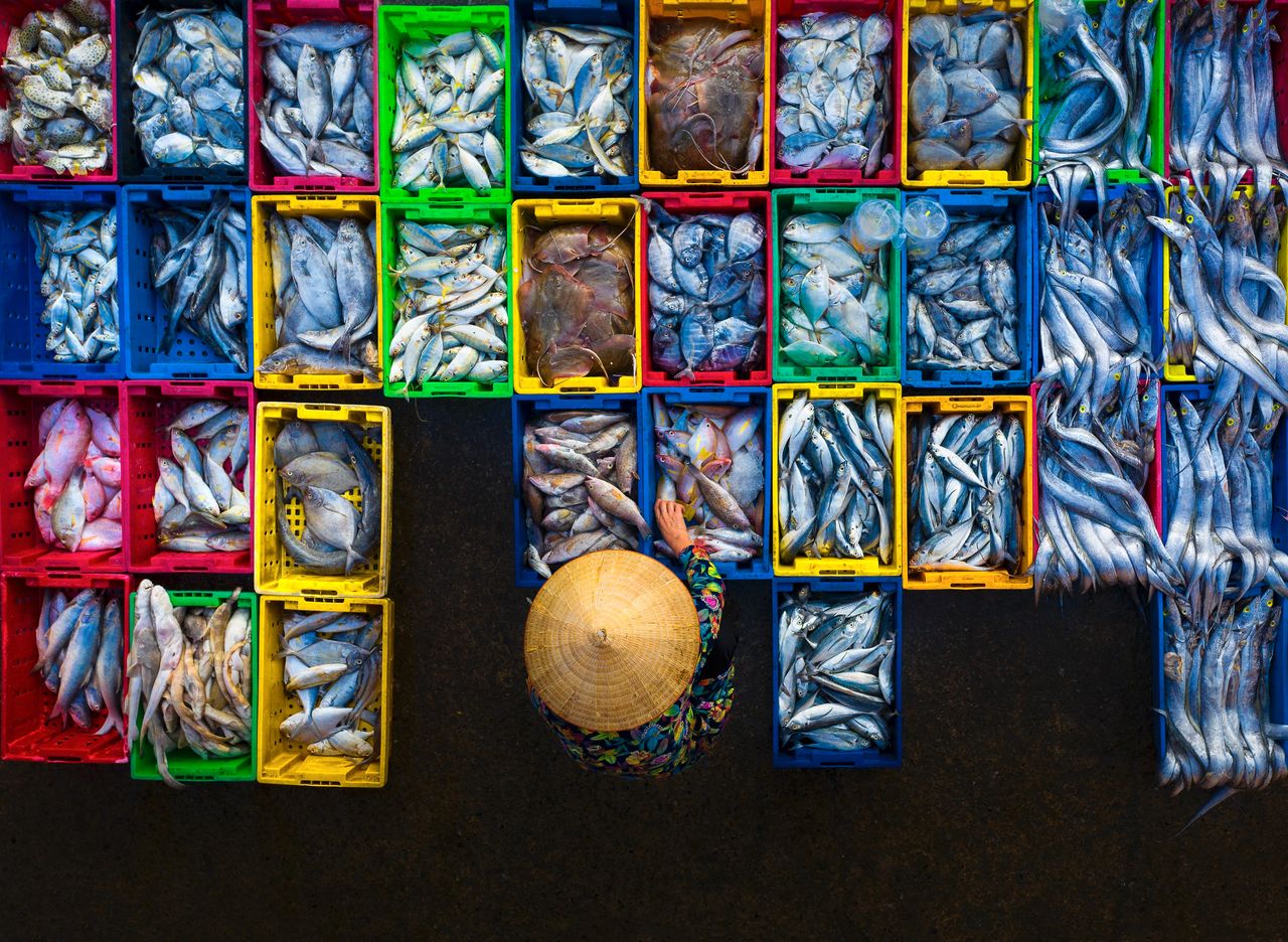 Marché aux poissons de Long Hai, ville côtière du sud du Vietnam.