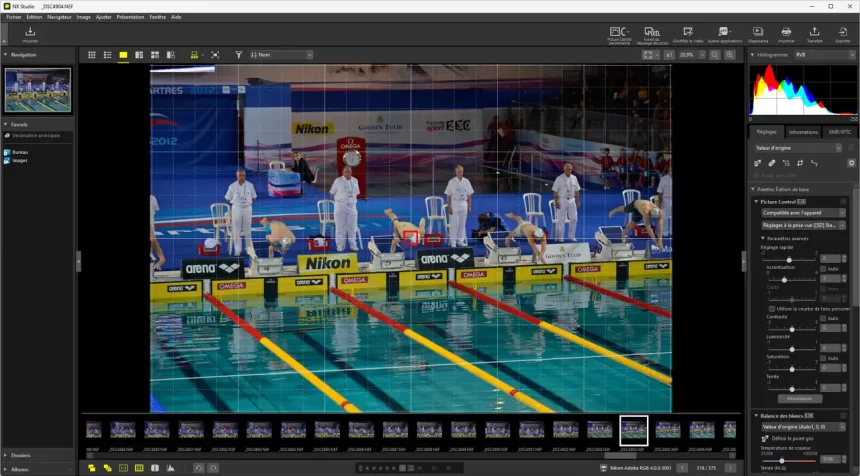 L’histogramme et la vue 100% sont essentiels pour vérifier que tu ne “casses” pas les détails dans les blancs ou les noirs. Sur un boîtier Nikon récent (Z, D750, etc.), NX Studio suit particulièrement bien le rendu JPEG du boîtier, ce qui rassure les débutants en RAW.