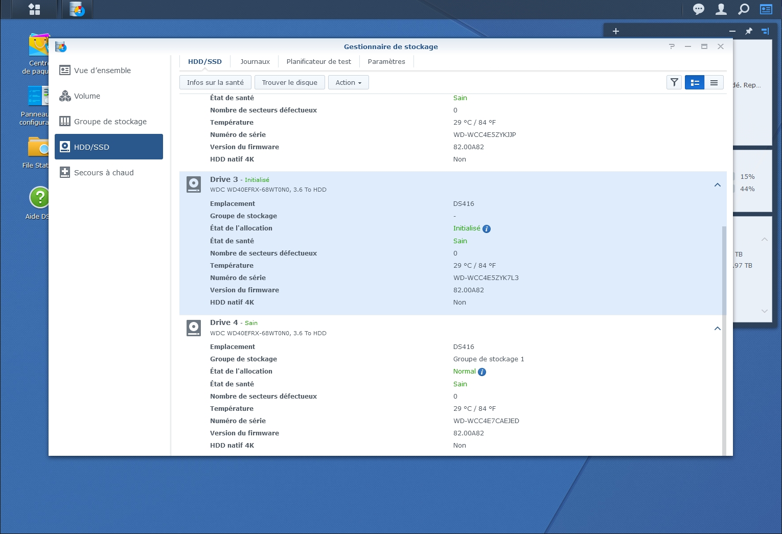 Dans la barre latérale gauche, cliquez sur «HDD/SDD» pour afficher la liste des disques durs et leur état respectif.