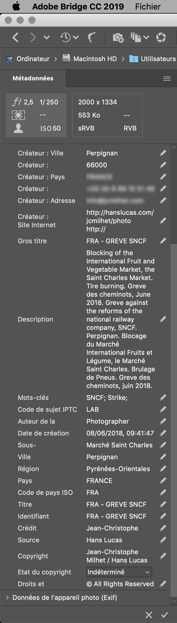 Imaginez, vous êtes en déplacement pour la semaine pour un magazine, le soir vous recevez un email d’un iconographe qui vous demande une image pour un quotidien qui sera bouclé dans la nuit, ou le lendemain matin. Vous faites quoi ? Vous vous mordez les doigts en pensant à votre bel écran calibré et au super fichier raw que vous avez dans un catalogue de 40000 autres, bien au chaud chez vous ? Et que vous envisagez de reprendre ? Non. Vous ouvrez votre catalogueur, tapez le mot ou les mots clefs correspondant à la recherche iconographique (Gilet+Jaune+Drapeau+Revendications) et vous exportez vos images en 5000 de large, niveau 7 parce que c’est assez grand pour une une de quotidien et suffisamment léger pour partir dans un email et go !…
